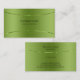 Imagem simples e elegante de um modelo de cartão de negócios de aço inoxidável verde metálico. Esta é uma imagem e não metal real ou acabamento metálico. Totalmente personalizável. Se precisar de ajuda para personalizar qualquer um dos meus designs, entre em contato com o designer do ArtOnWear. A formatação de texto livre com ajuda ao vivo está disponível por solicitação.
