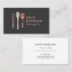 Um trio de utensílios comuns de cozinha junto com seu nome ou nome de empresa faz o logotipo perfeito nesta cartão de visita personalizável para uma empresa de restauração, padaria, restaurante, chef pessoal, redator de comidas, caminhão de comida ou qualquer negócio baseado em comida. © 1201AM CREATIVE