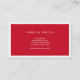 Um cartão de visita profissional moderno em cores brancas e vermelhas corporativas. Esse cartão de visita é ideal para vários profissionais, como Consultores, Contabilistas, Agentes Imobiliários, Freelancers etc. A placa também está disponível em azul e preto, que você pode ver aqui http://www.zazzle.com/collections/professional_corporate_style_business_cards-119741352833899050?rf=238364477188679314 Personalize-a substituindo o texto do marcador de posição. Para obter mais opções, como alterar a fonte e seu tamanho, clique no botão "Personalizar". *Observe que a Marca d'água do Zazzle que aparece na visualização de zoom NÃO aparecerá no produto impresso final. © Rosewood e Citrus