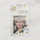 This elegant memorial prayer card features a soft white floral design that frames a customizable photo of your loved one, creating a serene and comforting tribute. The front includes editable text for the name, dates, and a short remembrance line, all set against a clean, light background.
