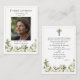 An elegant memorial photo funeral memorial prayer cards featuring elegant white roses. You can customize with your chosen prayer, psalm or poem. Elegant border of roses on simple white background. The cross and psalm make this design suitable for a christian funeral.