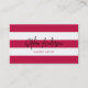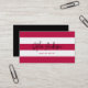 White Stripes e cartão de visita de Script Moderno de Cor Personalizada que apresentam a cor de fundo editável na parte frontal (clique em personalizar e altere a cor de fundo de rosa para outra cor) e na parte traseira. É fácil personalizar; substitua o texto do marcador de posição por suas próprias informações. Para obter mais opções, como alterar a fonte e seu tamanho/cor ou o espaçamento entre letras, clique no botão "Personalizar". *Observe que a Marca d'água do Zazzle que aparece na visualização de zoom NÃO aparecerá no produto impresso final. © Rosewood e Citrus