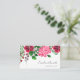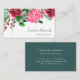 Design de cartão de visita floral elegante para estilistas de marcas, marcadores, floristas, planejadores de casamento e eventos, ou qualquer profissão apresenta flores de hidrocoloração hydrangea em tons vibrantes de rosa e roxo, acentuadas com folhas verdes e folhagem exuberantes. Personalize com duas linhas de texto personalizado na frente, e adicione seus detalhes de contato na parte de trás em letras brancas modernas em um fundo verde jasper de tom de joia.