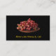 Este cartão de visita anuncia uma combinação de adega e café. Uma vida simples e tranquila de uma placa de cobre ornamentado transbordando com uvas claras e suculentas e vermelhas contra um pano de fundo preto agita a frente. O verso tem todo o texto pertinente que pode ser personalizado para se adequar à sua empresa.