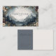 Define your brand with the ethereal drama of a winter twilight using this captivating business card. The design centers on a spectacular snowy mountain landscape set beneath a dark, starry midnight blue sky featuring a glowing crescent moon. The foreground reveals a misty valley of deep pine forests and a reflective lake. The entire scene is lavishly framed by an abundant, vintage-style floral border that wraps around the edges. The flowers showcase a complex, moody palette of creamy beige, dusty gray-blue, and deep burgundy roses, complemented by dark, frosty foliage. This artwork blends the quiet grandeur of a winter scene with intricate, dramatic botanical detail, creating a powerful and unique brand statement. This business card is ideally suited for a high-end event stylist specializing in moody or winter-themed occasions, a boutique hotelier wanting to convey a tranquil, picturesque setting, or a vintage fashion designer whose collection is inspired by dark romance and cool tones. It would also perfectly suit a fantasy novelist or editor seeking distinctive, narrative-driven branding, or a fine art print seller specializing in atmospheric landscapes.
