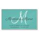 Cartão De Visitas Magnético Bonito Elegante Monograma Teal Composição Salão de