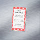 Um modelo de cartão de visita magnético personalizado para restaurante com letras serifadas e script amigáveis em um padrão xadrez vermelho e branco. Personalize para alterar fontes, adicione seu próprio logotipo e muito mais, até salve seu design para mais tarde.