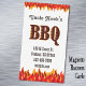 Um modelo de cartão de negócios magnético de restaurante personalizado com guião e texto ocidental, CHURRASCO em letras esmagadoras e arte de chamas vermelhas no topo e no fundo. Personalize-o para alterar as suas fontes, cores, adicionar o seu próprio logotipo e muito mais, até para guardar a sua design para mais tarde.