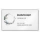 Cartão de visita magnético com uma ilustração mística. Uma lua azul escura com um contorno fino elegante e flores brancas ao longo das suas bordas.