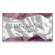 Este elegante e moderno ímã cartão de visita apresenta uma imagem de seda branca, emoldurada no topo e no fundo por uma aquarela mauve, moldada com cintilação cintilante prateada. Personalize-o com seu nome em um script de escrita manual fora de preto e suas informações comerciais em fontes sans serif. Ideal para cabeleireiros, maquiadores e estéticos.