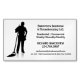 Um design de cartão de visita corajoso, preto e branco que caracteriza uma imagem do estilo da silhueta de uma pessoa que guardara um espanador molhado no preto torrado em um fundo branco liso. Texto fácil de ler com diversas áreas de texto personalizadas. Escolha sua própria cor do fundo se você prefere.