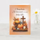 Estenda seus desejos de Ação de Graças a um Deacon dedicado com este cartão especial. A design do cartão captura lindamente a essência do outono, com abóboras, folhas e uma vela radiante. O proeminente crucifixo simboliza a fé e a orientação, refletindo o compromisso do Deacon. Dentro, expresse a sua gratidão pelo seu serviço e devoção. Mande bênçãos calorosas para uma Ação de Graças alegre.