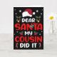 Cartão Dear Santa Cousin Did Its Candy Cane Christmas Par
