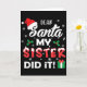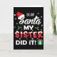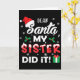 Cartão Dear Santa My Sister Did It Funny Christmas Pajama