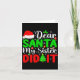 Dear Santa My Sister Did It Funny Xmas Family Girls Kids
