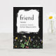 Definição de dicionário branco escuro para um AMIGO em preto com uma fronteira de flor silvestre para o aniversário de um amigo. O plano de fundo pode ser alterado.