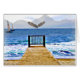 arte pintura de um Oceano com montanhas e veleiros com uma águia voando. Uma trilha onde se pode ficar de vigia, sonhar desejar e deixar de lado as preocupações.