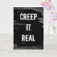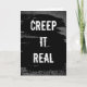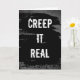 Um cartão de Halloween ousado em preto e branco com a frase “Creep It Real”. Perfeito para enviar saudações assustadoras com um senso de humor. Ótimo para amigos, colegas de trabalho ou qualquer pessoa que ama piadas de Halloween. O interior do cartão pode ser personalizado com apenas alguns cliques.