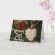 Lindo cartão de Natal retrata enfeites na árvore e apresenta a declaração "Deixem todo coração preparar-lhe morada", uma linha da amada canção Joy to the World.
