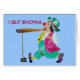 Deixo De Fumar. Este cartão representa um Palhaço levando um enorme charuto para passear. Acima diz "Eu Deixo De Fumar!" Dentro diz "Cigarros pequenos!!!"