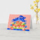 Um coelho em uma finaria de Delft azul entre as Tulips Primavera num fundo de gingham bonito. De ilustrações de Anni Arts desenhadas à mão e pintadas. Personalize seu dentro de saudação.
