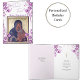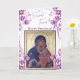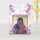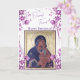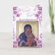Delicado quadro de flores roxas com um ícone ortodoxo cristão do cartão de aniversário de Theotokos e de Criança Cristo. Personalize com todos os seus detalhes pessoais e preferências.