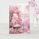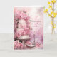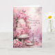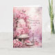 Um belo cartão de dia de casamento rosa e florescente para a noiva e o noivo. "Desejando que você ame, risse e alegremente para sempre" do lado de fora. Verso na dentro: "Desejando que você ame, risse e alegre para sempre depois de maio, os anos que se seguem sejam cheios de tanto amor"