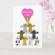 Gatos de desenho coloridos diferentes sobre os ombros uns dos outros, com o gato superior segurando um sinal rosa que diz 'Desejo-te'.
