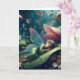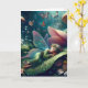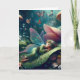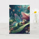 Desejando um cartão de aniversário mágico para amigo ou familiar, adulto ou criança. Uma bela ilustração de ia com uma fada caprichosa cochilando em um cogumelo com um fundo mágico de conto de fadas de cogumelos e flores. Você pode usar este cartão para um aniversário ou apenas para desejar um bom dia!