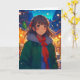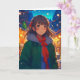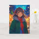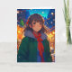 Menina de anime bonito num cartão de Natal de inverno.