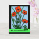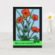 O cartão de saudação de papel de Aniversário, com uma ilustração de papoilas vermelhas, dentro a preta. A ilustração parece vidro manchado com contornos pretos. Bolhas vermelhas brilhantes com caules e folhas verdes escuras. Fundo azul claro do céu. Elemento picante cortesia de Openclipart. Arte, imagem e direitos de autor © Shoaff Ballanger Studios.