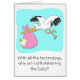 Desenhos animados engraçados do bebê do carregando da cegonha. Apropriado como um cartão dos parabéns para mães e pais novos.