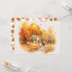 Procurando o cartão perfeito para enviar a um amante de cães em sua vida? Não procure mais do que este cartão de saudação de cães de outono em aquarela! O design apresenta um cachorro fofo em um cenário de outono, cercado por folhas em todas as cores da estação. É a maneira perfeita de desejar um feliz outono a alguém!