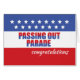 Belas fontes e estrelas, todas em vermelho, branco e azul. Este é o cartão patriótico que você precisa para seus Parabéns em uma Parada de Despedida. Um homem ou uma mulher que ama o seu país vai certamente gostar de receber a sua mensagem desta forma no seu dia de licenciatura.