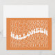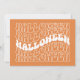 Este design atraente de Halloween apresenta uma repetição ousada e divertida da palavra "HALLOWEEN" em uma fonte ondulada e retrô. O texto é organizado em várias camadas, criando um padrão visualmente dinâmico que atrai o espectador. A palavra central é destacada em uma cor laranja vibrante e sólida, fazendo-a se destacar do texto circundante, que é delineado na mesma cor. A tipografia ondulada adiciona um senso de movimento e energia, capturando perfeitamente o espírito assustador e divertido do Halloween.