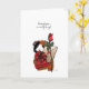 Lindo porquinho-da-índia preto, branco e fulvo (gênero cavia: também conhecido como "cavy") segurando uma caixa de chocolates em forma de coração, cartão de felicitações e uma rosa vermelha — um pouco de amor para o Dia dos Namorados, Dia das Mães ou qualquer dia de dar para dizer eu te amo de todas as maneiras. Arte de Margaret Loftin Whiting.