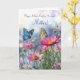 Crie um cartão do Dia das Mães feliz para a Mamãe com uma cena encantadora de flores cor-de-rosa e borboletas, com texto personalizado para torná-lo uma mensagem sincera e pessoal só para ela.