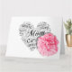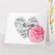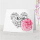 Um cartão do Dia das Mães adornado com um coração e cravo rosa simbolizando beleza e amor materno.