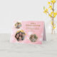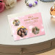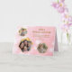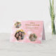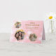 Cartão do Dia das Mães com três cobrir de fotos e verso de Bíblia personalizado no cobrir em fundo brilhante rosa. Dentro do cartão está disponível espaço para mensagens personalizadas.