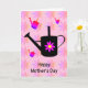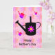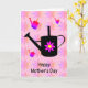 Cartão para um jardineiro entusiasta com uma imagem de um regador com flor rosa e um fundo colorido de flores e regadores. Personalize facilmente este cartão editando o texto do modelo na frente e no interior. Ótimo cartão para o Dia das Mães. Obrigado por visualizar meus designs!