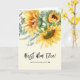 Cartão dobrado do Dia das Mães com girassol aquarela eucalipto e folhagem com "melhor mãe de todos os tempos!" em caligrafia e fonte moderna. Personalize a mensagem interna ou exclua para mensagem manuscrita.