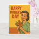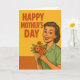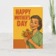 Celebre a Mamãe com um charme atemporal usando este cartão de dia das mães com inspiração retrô. Apresentando uma mulher alegre segurando um vibrante buquê contra um pano de fundo quente e vintage, este design combina ilustrações clássicas dos anos 50 com tipografia vermelha ousada que diz “FELIZ DIA DAS MÃES”. Perfeito para aqueles que amam estética nostálgica e mensagens sinceras, este cartão é um charmoso presente ou lembrança para a mulher mais importante da sua vida.