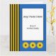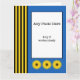 Cartão azul e amarelo com listras e um girassol. Envie sua própria foto de 4 por 6. Feliz Dia das Mães dentro.