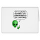 Uma alienígena de desenho animado dizendo que é sempre dia de as mães em algum lugar do universo.
