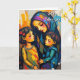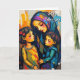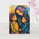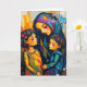 Lindo ilustração de uma mãe com dois filhos em uma colorida arte de abstrato ai. Feliz cartão de Dia de as mães com uma mensagem personalizada na dentro. As cores utilizadas são azul, roxo, amarelo e laranja.
