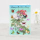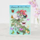Um voo de borboletas coloridas flutua em torno de rosas vermelhos e brancos, sobre um fundo azul sombreado. O texto do dentro pode ser alterado para sua própria mensagem. Esta é uma bela carta, por favor!