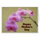 Orquídeas de falaenopse rosa com as palavras Feliz Dia de as mães por baixo. Dentro é vazio.
