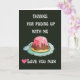 Este cartão de Dia de as mães minimalista, mas significativo, celebra tudo o que as mães aprendem na viagem de parentalidade. A Frente Negra e Burundi apresenta o texto retrorreflector pensado: "OBRIGADO POR SE APOIAR COMIGO. Amo-te, mãe" e pudim bonito. Dentro, pode ser deixado vazio para a sua própria mensagem pessoal. Se você decidir editar um texto - ele será impresso O design aberto diz muito com apenas algumas palavras simples. É o cartão perfeito para as mães que cresceram e descobriram mais sobre a vida e sobre elas mesmas através da criação do seu filho. Sua mãe apreciará o reconhecimento de que a maternidade a moldou de maneiras profundas. Que este cartão seja um lembrete para refletir sobre as lições que aprenderam juntos e para a obrigado pela sua orientação altruísta ao longo do caminho. Personalize com foto se quiser.