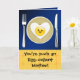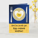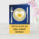 Você é uma mãe tão boa! Este lindo kawaii, um ovo fácil em forma de coração com um rosto sorriso, é um cartão de dia de as mães adorável para uma amiga mãe ou associada. Azul e amarelo com prato, faca e garfo.