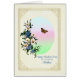 Um belo cartão de mãe floral para a mãe. Um buquê adorável de flores azuis e brancas com uma borboleta marrom em voo. A imagem tem uma delicada estrutura de ouro.
